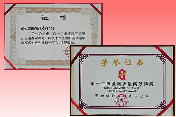 - 邢鋼再度榮獲“全國質量獎鼓勵獎”,并獲“全國實施卓越績效模式先…