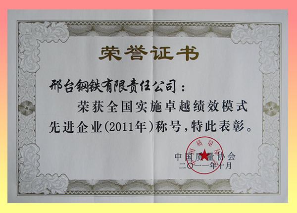 - 日前,由中國質(zhì)量協(xié)會(huì)主辦的第十一屆全國追求卓越大會(huì)在北京召開。會(huì)議對(duì)4家再次獲“全國質(zhì)量獎(jiǎng)”、8家首次獲“全國質(zhì)量獎(jiǎng)”、16家“獲全國質(zhì)量獎(jiǎng)鼓勵(lì)獎(jiǎng)”、111家獲“全國實(shí)施卓越績效模式先進(jìn)企業(yè)”進(jìn)行了表彰,邢鋼公司榮獲“全國質(zhì)量獎(jiǎng)鼓勵(lì)獎(jiǎng)”和“全國實(shí)施卓越績效模式先進(jìn)企業(yè)”兩項(xiàng)殊榮。