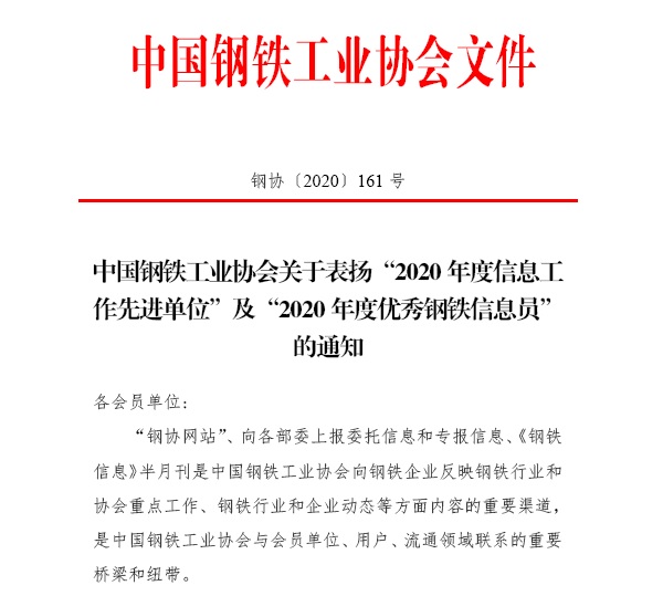 邢鋼被中鋼協(xié)評為“2020年度信息工作先進(jìn)單位”
