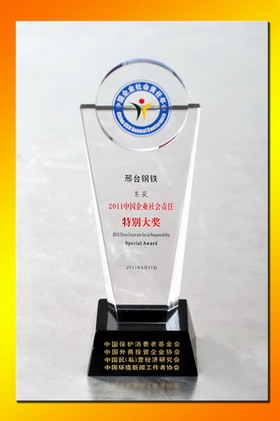 2011年6月17日,由中國(guó)外商投資企業(yè)協(xié)會(huì)、中國(guó)保護(hù)消費(fèi)者基金會(huì)、中國(guó)民(私)營(yíng)經(jīng)濟(jì)研究會(huì)、中國(guó)環(huán)境新聞工作者協(xié)會(huì)和北京市石景山區(qū)人民政府聯(lián)合主辦的“第三屆企業(yè)社會(huì)責(zé)任年會(huì)”在北京舉行。本次年會(huì)主題為“企業(yè)的責(zé)任戰(zhàn)略與創(chuàng)新”。年會(huì)上隆重揭曉“2011(第三屆)中國(guó)企業(yè)社會(huì)責(zé)任榜單”。邢鋼公司經(jīng)過(guò)嚴(yán)格審核,入選“中國(guó)企業(yè)社會(huì)責(zé)任榜100強(qiáng)”,并獲“2011中國(guó)企業(yè)社會(huì)責(zé)任特別大獎(jiǎng)”,授予邢鋼董事長(zhǎng)袁世臻 “中國(guó)履行社會(huì)責(zé)任優(yōu)秀企業(yè)家”稱號(hào)。