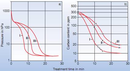 對于初始碳含量大約為0.03%,采用壓降方式Ⅰ在15min內(nèi)碳含量可以降到12×10-6,而采用壓降方式Ⅲ則只能降低到50×10-6 。