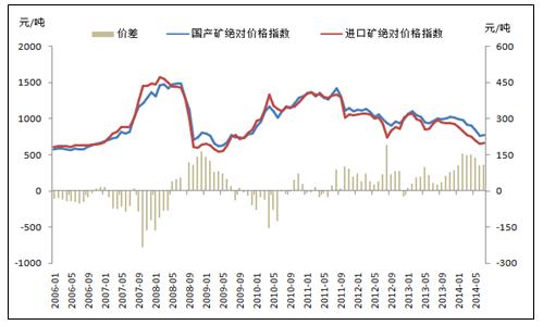 圖5:進(jìn)口礦和國產(chǎn)礦絕對價格指數(shù)