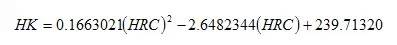 因?yàn)榕嫌捕扰c洛氏硬度的對應(yīng)曲線類似于拋物線,故由曲線得出近似的換算公式為