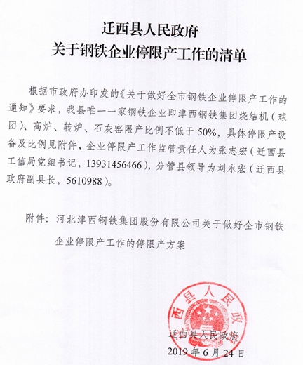 唐山遷西縣人民政府關(guān)于鋼鐵企業(yè)停限產(chǎn)工作的清單
