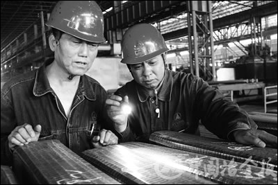 圖為邢鋼線材廠員工對修磨鋼坯進(jìn)行檢驗的現(xiàn)場。