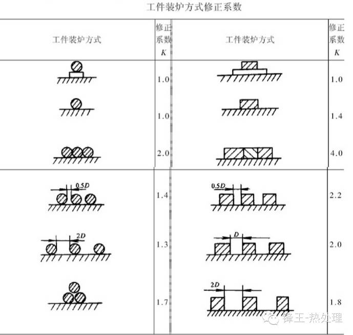 傳統(tǒng)的碳素鋼淬火加熱時間的計算公式:T=K•αD