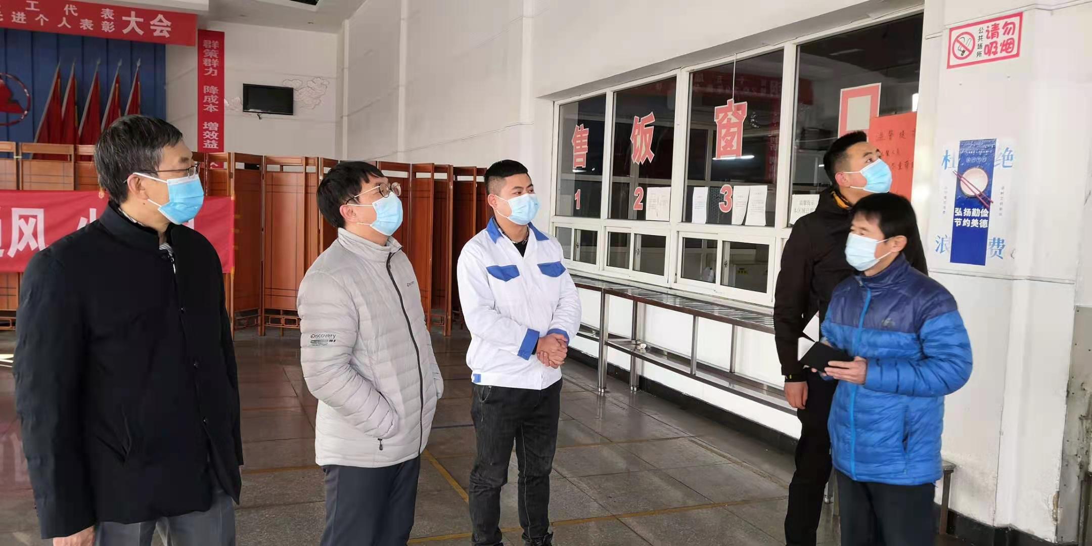 強化使命擔(dān)當(dāng), 筑牢疫情防控強大防線,發(fā)揮黨組織戰(zhàn)斗堡壘作用和黨員模范作用。1月5日下午,黨委書記王春雨帶領(lǐng)公司疫情防控辦公室成員,先后深入眾鑫食堂、公司各大門,檢查疫情防控工作落實情況。要求食堂嚴密防控傳染源,最大限度降低交叉?zhèn)魅撅L(fēng)險,規(guī)范衛(wèi)生管理和清洗消毒,讓職工吃得安全、放心;在公司各大門崗位,防控組認真查看了進入人員登記檢查情況和體溫儀、消毒器具的配備使用情況。