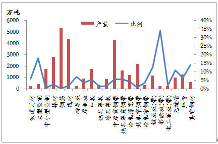 1-5月份我國(guó)鋼材出口數(shù)量占國(guó)內(nèi)產(chǎn)量比例