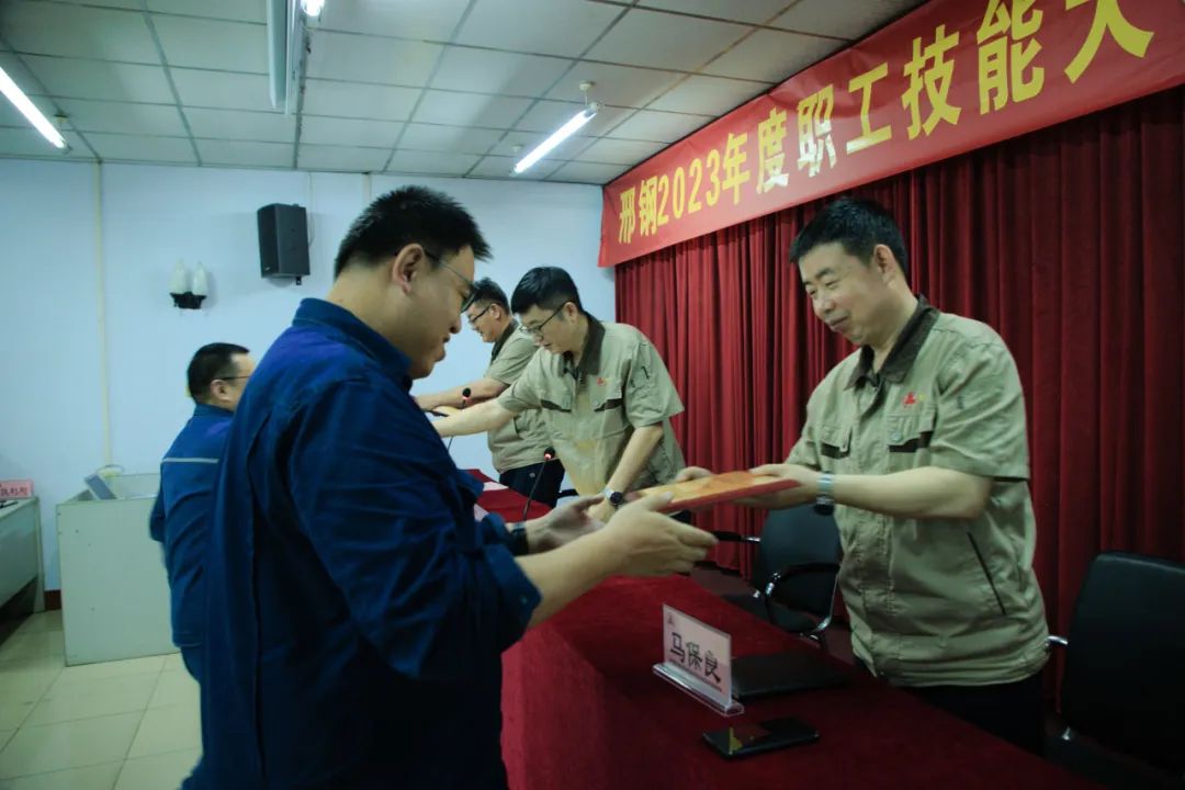 近日,邢臺(tái)鋼鐵有限責(zé)任公司在線材廠召開(kāi)“2023年度職工技能比武大賽表彰會(huì)”,對(duì)取得優(yōu)異成績(jī)、表現(xiàn)突出的先進(jìn)個(gè)人和集體進(jìn)行表彰。公司總經(jīng)理彭世丹、副總經(jīng)理馬保良、韓清連為獲獎(jiǎng)選手頒發(fā)榮譽(yù)證書(shū)并致賀。