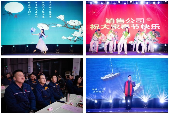 演出開始前,由各二級單位錄制的《鋼鐵工人大拜年》視頻為聯(lián)歡會開幕烘托出濃厚的節(jié)日喜慶氣氛。煉鐵廠王艷等的開場舞《中國龍,舞起來》歡樂、動感;儲運中心侯伊坤的獨唱《風(fēng)吹麥浪》唯美、清新;新翔公司楊立興等的三句半表演《賀龍年》則輕松、詼諧;煉鐵廠劉士沛與新入職年輕人“以老帶新”的歌伴舞《時代號子——致敬邢鋼人》點燃起晚會現(xiàn)場觀眾的火熱激情。質(zhì)量控制部孫濤的薩克斯獨奏《she》、焦化廠申學(xué)軍的《戲曲串燒》、線材廠魏東的獨唱《兄弟干杯》、財務(wù)部楊佳薏的獨舞《星河嘆》、銷售公司田芳等的小合唱《不放棄》、煉鋼廠甄建軍、張康健的二重唱《可能》、動力廠董巖、陳險峰等的歌舞《最親的人》等節(jié)目繽紛呈現(xiàn),展示了邢鋼人多才多藝的別樣風(fēng)貌;煉鐵廠楊曉霞等的情景劇《歲月》以兩代人的視角,抒發(fā)了企業(yè)歷史變遷中不變的邢鋼人情懷;賈凌雪、陳燕、魏秋紅、李濟興聯(lián)袂表演的詩朗誦《沉香·甲子邢鋼》,回顧邢鋼65年跋涉歷程,寄語新邢鋼美好未來;公司總經(jīng)理彭世丹等中高層領(lǐng)導(dǎo)的合唱《眾人劃槳開大船》把整場聯(lián)歡會推向高潮,臺上歌聲鏗鏘,臺下掌聲相和,激發(fā)起邢鋼人“眾志成城創(chuàng)大業(yè),凝心聚力贏未來”的壯志豪情。聯(lián)歡會在《陽光路上》的歌聲中落下帷幕,預(yù)示著新邢鋼的未來發(fā)展一路陽光、前程錦繡!
