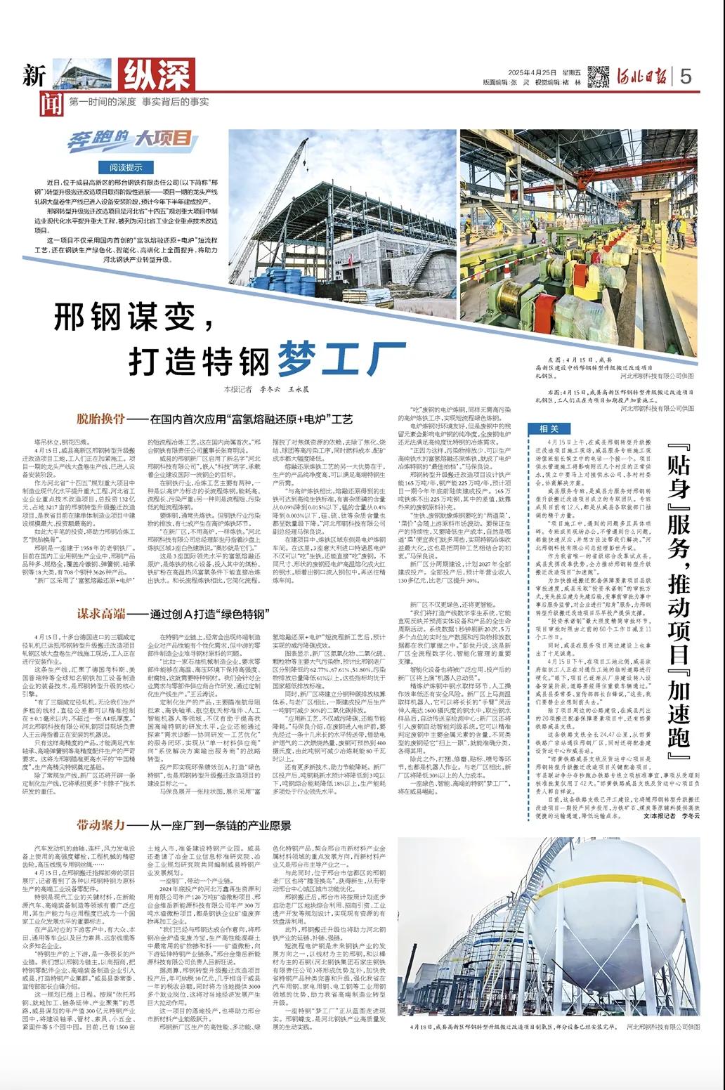 一座特鋼“夢工廠”正從藍圖走進現(xiàn)實。邢鋼蝶變,是河北鋼鐵產(chǎn)業(yè)高質量發(fā)展的生動實踐。(河北日報記者 李冬云 王永晨)