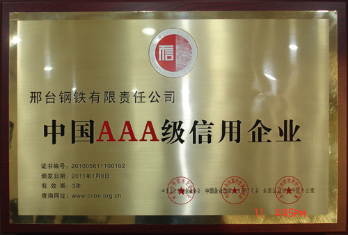 日前,在由中國(guó)合作貿(mào)易企業(yè)協(xié)會(huì)、中國(guó)企業(yè)改革與發(fā)展研究會(huì)、全國(guó)企業(yè)信用評(píng)價(jià)辦公室組織召開的中國(guó)企業(yè)科學(xué)發(fā)展論壇暨誠(chéng)信表彰大會(huì)上,邢鋼被評(píng)為2010年度“中國(guó)AAA級(jí)信用企業(yè)”、公司榮獲“全國(guó)文明誠(chéng)信示范單位” 稱號(hào)、董事長(zhǎng)、總經(jīng)理袁世臻榮獲“全國(guó)優(yōu)秀誠(chéng)信企業(yè)家” 稱號(hào)。